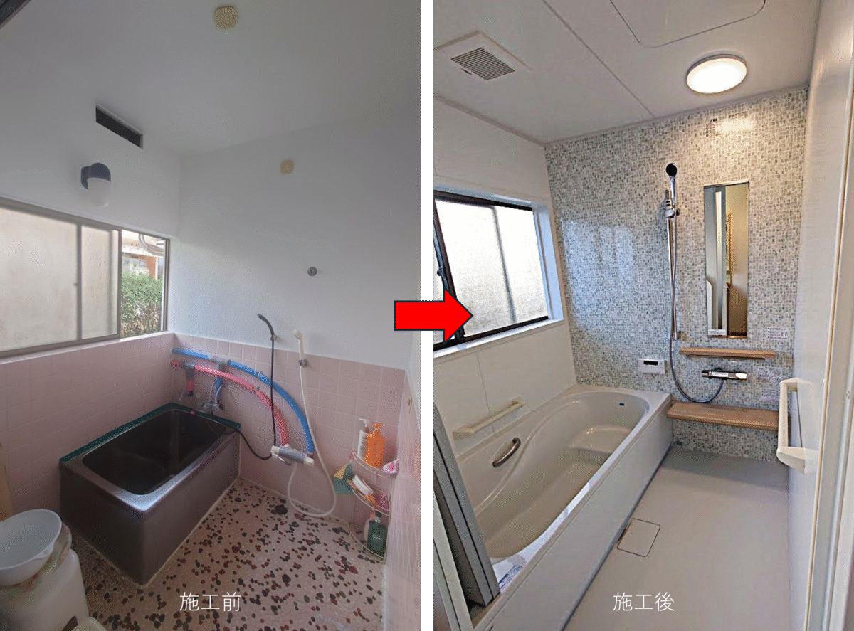 「寒かったお風呂が楽しみになった」「入浴時の段差が小さくなり入浴が楽になった。手すりもついたので安心してお風呂に入ることができるようになった」