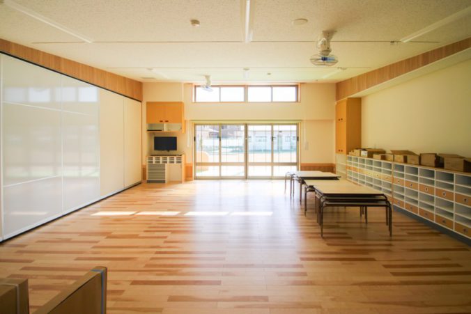 既存の園舎からアルミニウム製の渡り廊下でつなぎ、2部屋の保育室とトイレが装備されています。