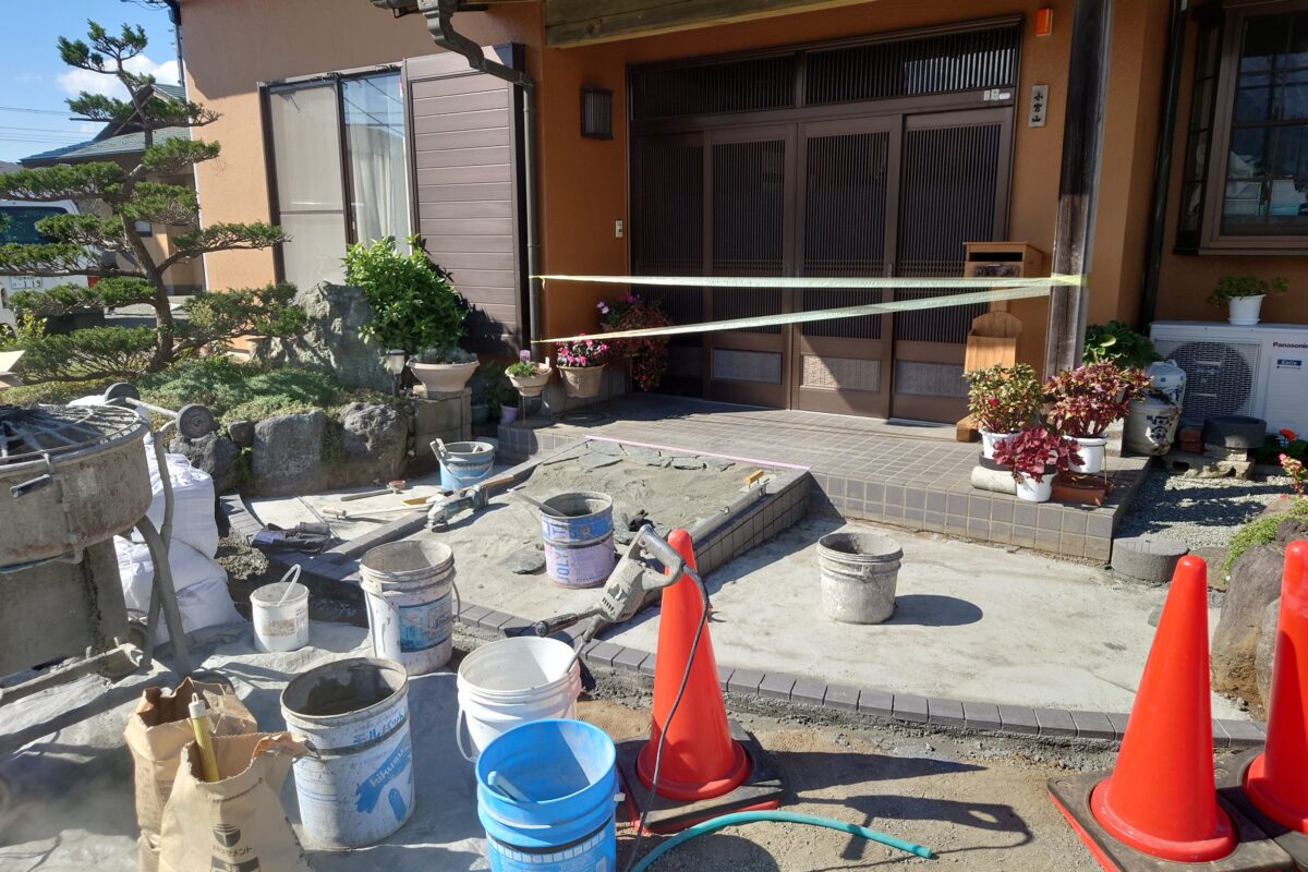 御殿場市内で、玄関のバリアフリー化とエントランス舗装工事が始まりました。